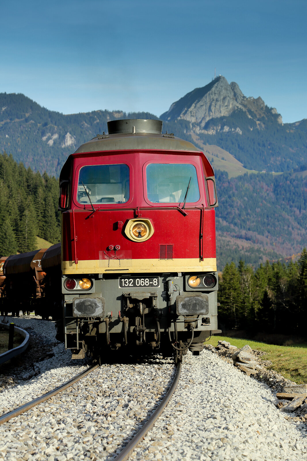 InterTourex GmbH 132 068-8 war kurzzeitig auf der Strecke geparkt und so konnten die anwesenden Fotografen Ende Oktober 2025 dieses tolle Motiv mit dem Wendelstein zwischen Neuhaus und Aurach ablichten. Flo Weiss
