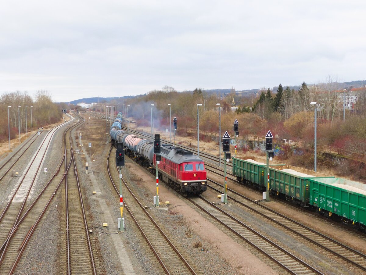 Bahnbetreib Gera Ludmilla, 232 529-8 ( 9280 1232 529-8 D-GERA ) drückt einen Kesselwagenzug mit Treibstoff ins geraer Tanklager am 15.2.2026 Mario Ulbricht