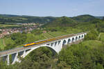 232 409 mit einem Zug voller Rohre für den Pipelinebau. Das Ziel könnte Torgelow Drögheide gewesen sein. Fotografiert bei Ferdinandshof am 25.05.2018