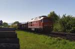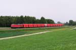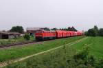 232 409 mit einem Zug voller Rohre für den Pipelinebau. Das Ziel könnte Torgelow Drögheide gewesen sein. Fotografiert bei Ferdinandshof am 25.05.2018
