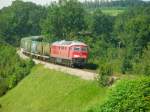 Ludmilla 233452-2 der DB war am 16.9.2025 um 14.16 Uhr bei Regenstauf mit einem schweren Schienentransport unterwegs nach Regensburg.