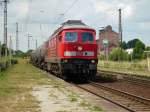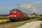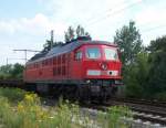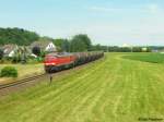 232 409 mit einem Zug voller Rohre für den Pipelinebau. Das Ziel könnte Torgelow Drögheide gewesen sein. Fotografiert bei Ferdinandshof am 25.05.2018