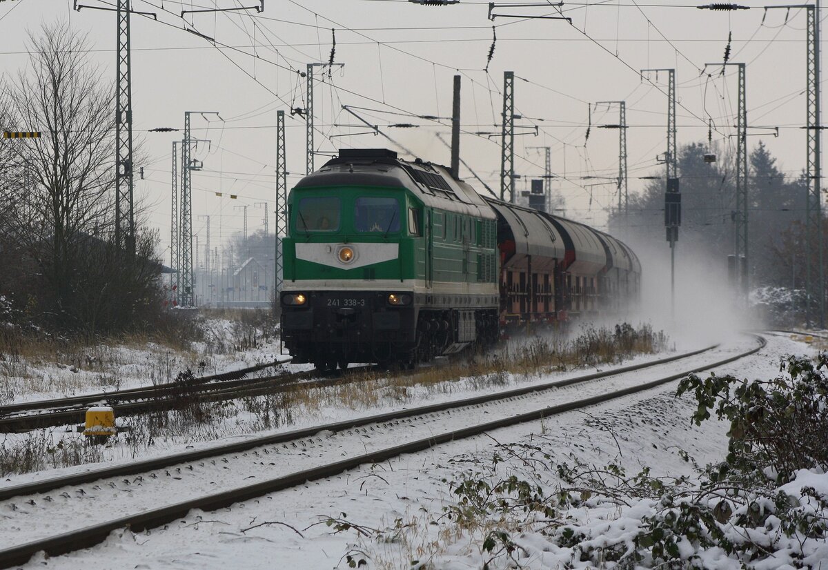 Die 241 338 kehre am 10.03.26 wieder in ihr altes Heimatgebiet zurück zur Wismutbahn Kayna nach Seelingstädt. Hier ist sie jetzt für Triangula als Ersatz einer kaputten Lok im Sandzugpendel im Einsatz. Der Sand wird von der Sandgrube für das Verfüllen eines alten Absatzbeckens benötigt. Andreas Schreiber