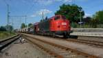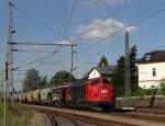 261 047 schleppte am 24.06.25 eine aus Kesselwagen bestehende Übergabe aus Bitterfeld durch Brehna Richtung Halle(S).