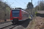 264 003 mit einem Altschotterzug auf Niederbordwagen durch Neckargerach am 16.3.2021 in Richtung Heidelberg.