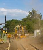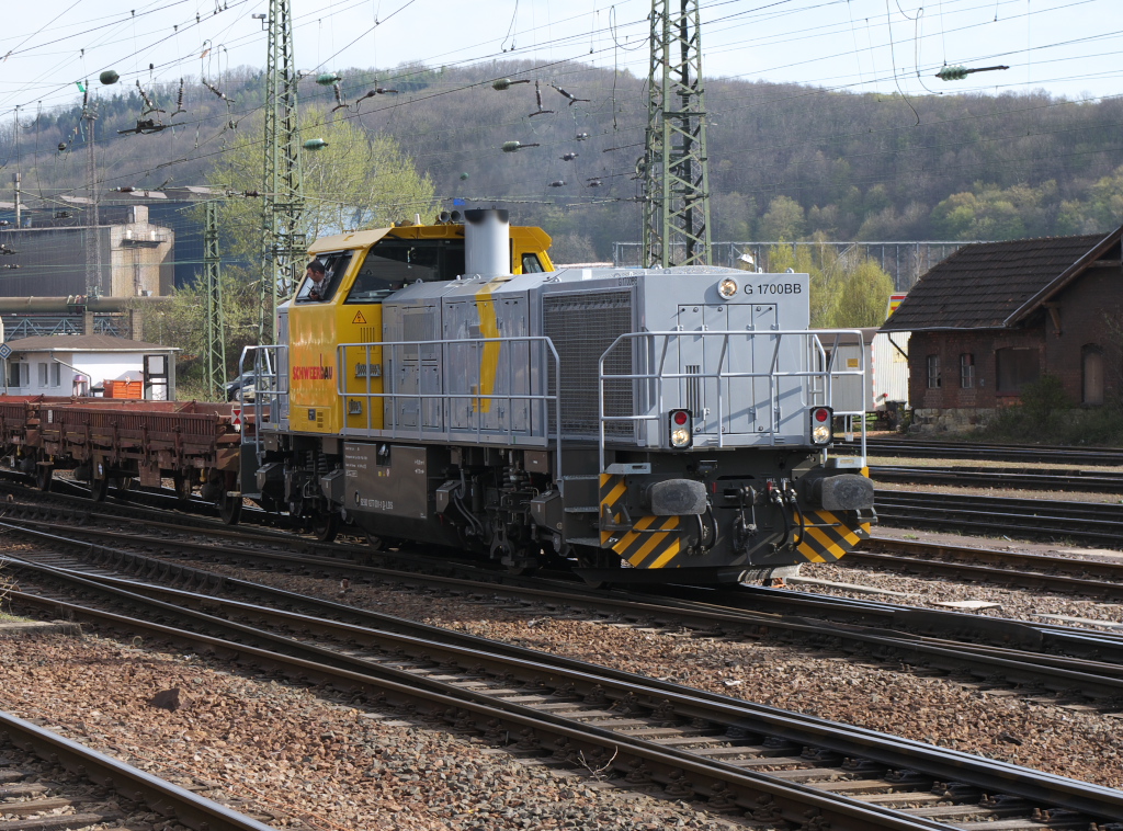 Fast noch neu am 02.04.2012, die G 1700 BB 277 031-1 von Schweerbau - Zwischen Völklingen und Bous wurde gebaut und die Gleise und der Schotter auf der KBS 685 werden erneuert. Im Bauzugeinsatz ist Vossloh G 1700 BB, Baujahr 2011.