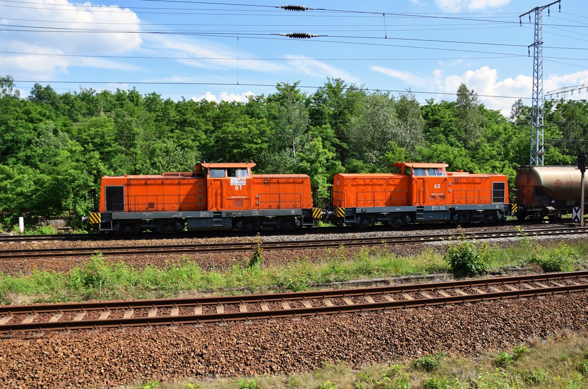 293 061-8 und 293 062-6 bei der Ausfahrt von Senftenberg in Richtung Cottbus am 19.06.2016.