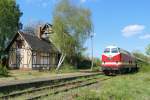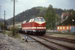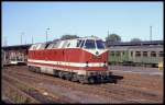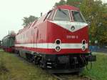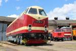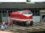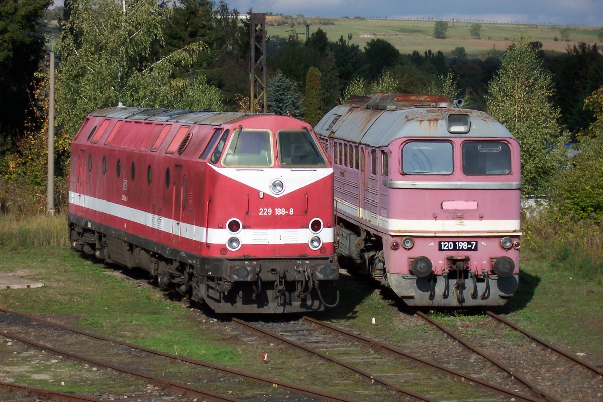 Das "U-Boot" 229 188 und die "Taigatrommel" 120 198 am 09.10.2004 an der Drehscheibe des TBw Weimar.