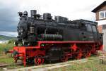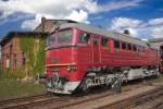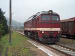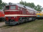 DR-Diesellok 120 198 am 28.05.2005 beim TEV Weimar. Die Tfz-Nummer wurde mit Kreide über der Kupplung angeschrieben.