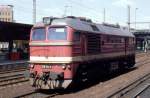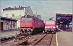 Die  Wumme  120 255, die vor der Wende als Schiebelok in Dresden-Neustadt für die Steilrampe nach Dresden-Klotzsche eingeteilt war, kam Mitte 1988 zu Güterzugehren vor einem Zug nach Bautzen bei Dresden-Klotzsche.