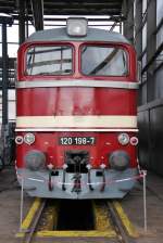 Das  Gesicht  der BR 120 274, am 16.09.2012 im Bahnbetriebswerk Arnstadt in Thüringen.