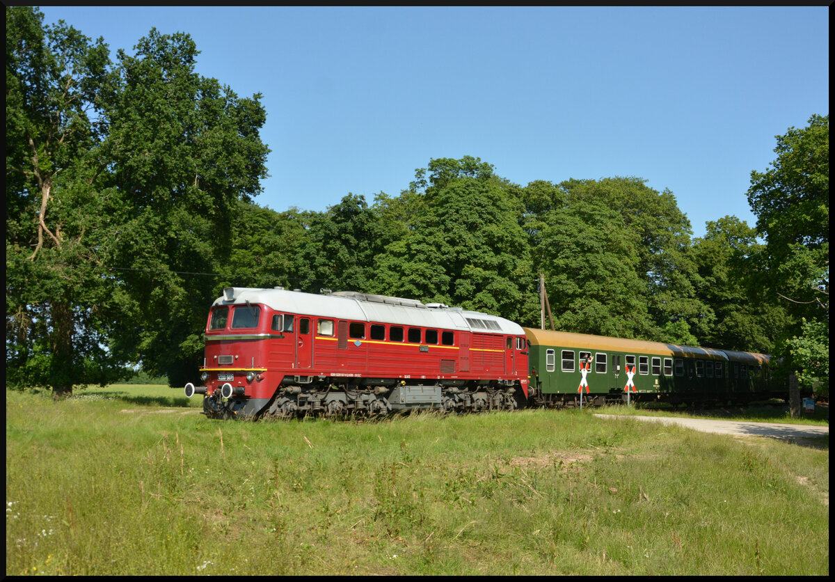EBS V 200 507 ist drie Jahre nach den Erstauftritt in Benesov u Prahy wieder dort zu Gast und schiebt am 27 September 2025 eine der 25 Sonderzüge des Tages aus Benesov u Prahy während das Bahnfest STEAM56.