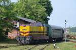 EBS V 200 507 ist drie Jahre nach den Erstauftritt in Benesov u Prahy wieder dort zu Gast und schiebt am 27 September 2025 eine der 25 Sonderzüge des Tages aus Benesov u Prahy während das Bahnfest STEAM56.