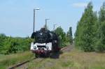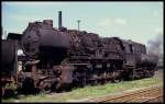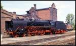 Die  Wumme  120 255, die vor der Wende als Schiebelok in Dresden-Neustadt für die Steilrampe nach Dresden-Klotzsche eingeteilt war, kam Mitte 1988 zu Güterzugehren vor einem Zug nach Bautzen bei Dresden-Klotzsche.