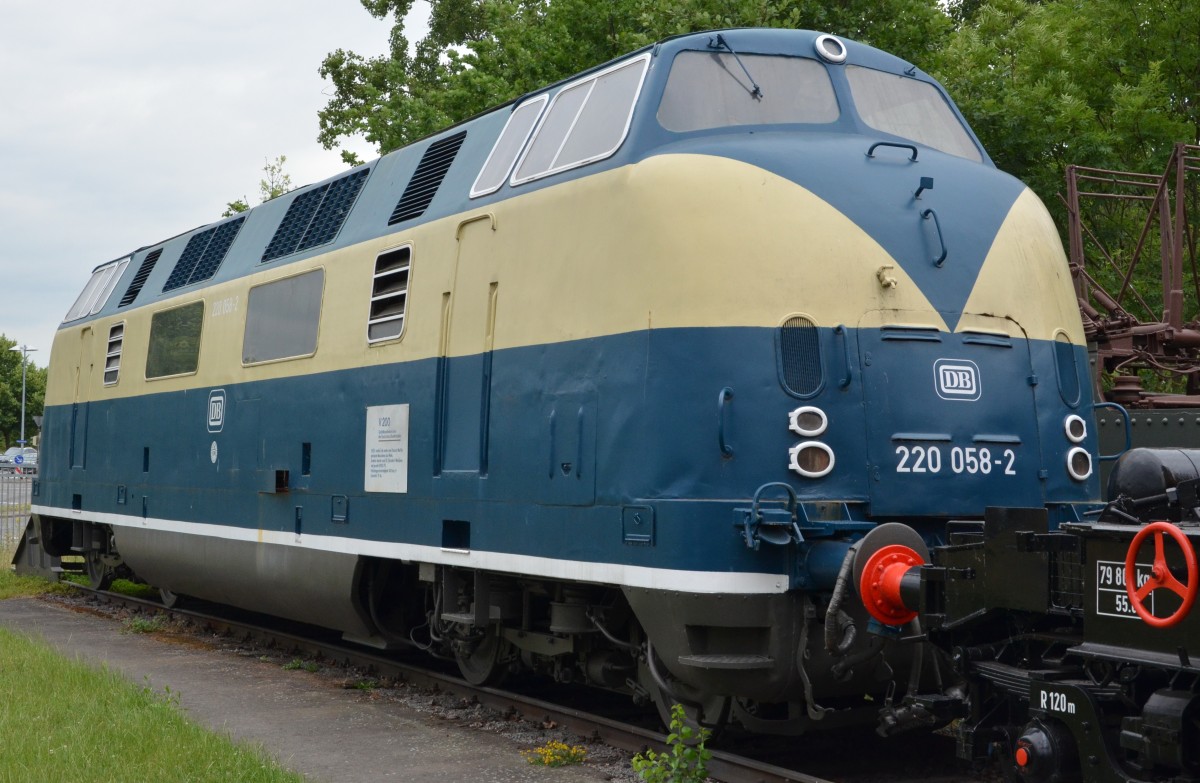 V 200 Großdiesellok der DB. 1953 verließ die erste von Krauss-Maffei gebaute Maschine das Werk. Der Antrieb wurde durch zwei 12 Zylinder V-Motoren mit je 1000 PS und einer Höchstgeschwindigkeit von 140 km/h in Dienst gestellt. Gesehen im Museum Speyer am 09.06.2015.