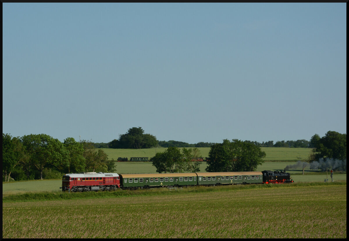 EBS V 200 507 ist drie Jahre nach den Erstauftritt in Benesov u Prahy wieder dort zu Gast und schiebt am 27 September 2025 eine der 25 Sonderzüge des Tages aus Benesov u Prahy während das Bahnfest STEAM56. Leonardus Schrijvers