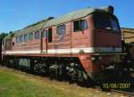 DR-Diesellok 120 198 am 28.05.2005 beim TEV Weimar. Die Tfz-Nummer wurde mit Kreide über der Kupplung angeschrieben.