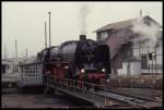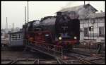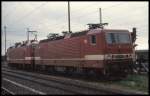Die "Wumme" 120 255, die vor der Wende als Schiebelok in Dresden-Neustadt für die Steilrampe nach Dresden-Klotzsche eingeteilt war, kam Mitte 1988 zu Güterzugehren vor einem Zug nach Bautzen bei Dresden-Klotzsche.