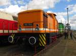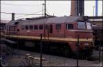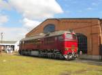 DR-Diesellok 120 198 am 28.05.2005 beim TEV Weimar. Die Tfz-Nummer wurde mit Kreide über der Kupplung angeschrieben.