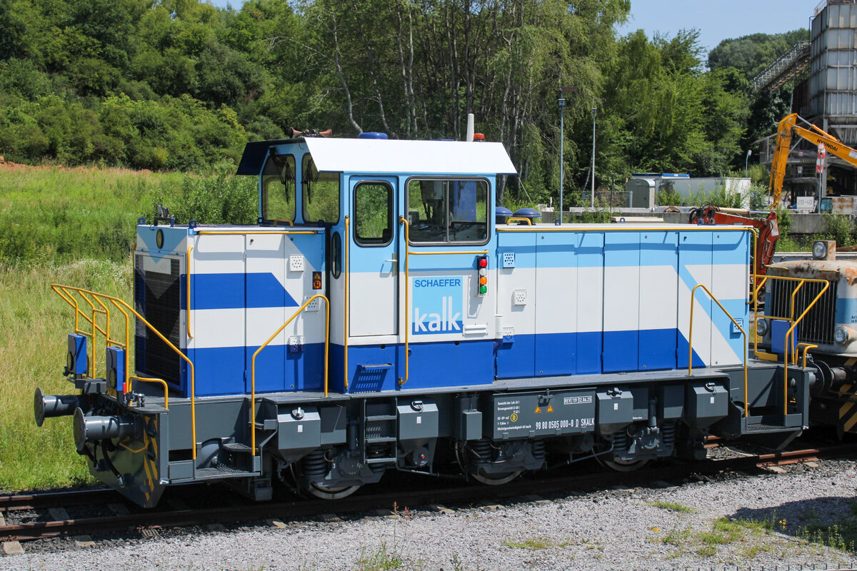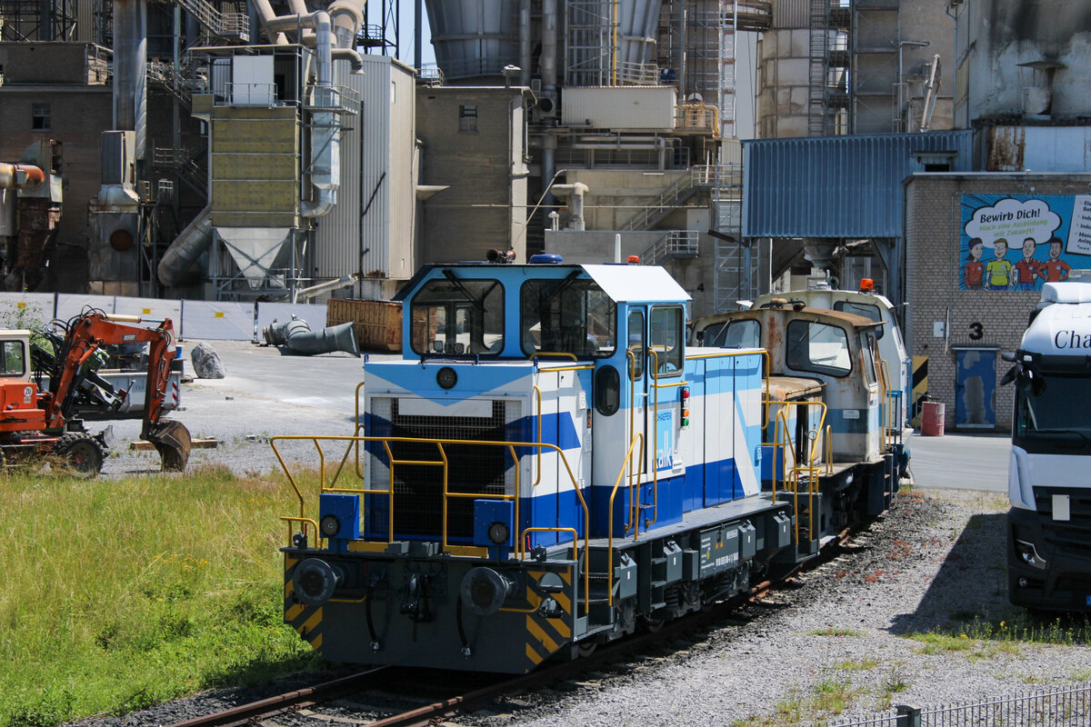 ZKS Z1 (Krauss-Maffei 19925/1984) und Rogesa R5 (Krauss-Maffei 20451/2001) am 12.05.2025 vor Hochofen 4 der Dillinger Hütte
