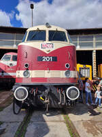 Die Diesellok V10B Blaue Rosi war beim Geraer Eisenbahnfest zusehn. Foto 25.09.21