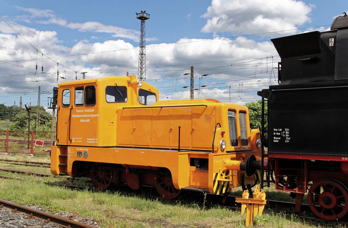 Die wunderbar gepflegte Kleinlok vom Typ V 10 B der IG Traditionsgemeinschaft 50 3708 e. V. wurde 1963 von LKM mit der Fabriknummer 252308 an das DR-Raw. Halberstadt mit der Nummer 370001 geliefert. Die Aufnahme entstand am 09.06.2012 auf einem Gelände in Blankenburg, auf dem auch Tfz. des Sozialvereins "Die Brücke e. V." abgestellt sind (Quelle: "rangierdiesel.de)