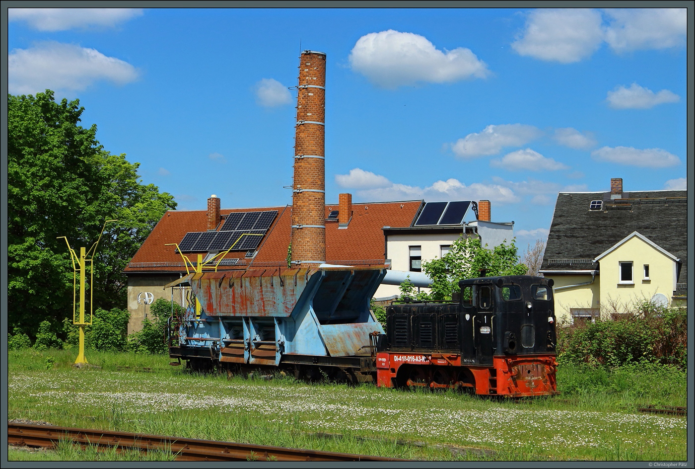 Zum Verein Kohlebahnen Meuselwitz gehören auch die Kaluga mit Baujahr 1982 und die Lok 1 des VEB Möbelkombinat Zeulenroda-Triebes. Am 09.05.2024 sonnten sich die Maschinen auf dem Gelände des Bw Meuselwitz.