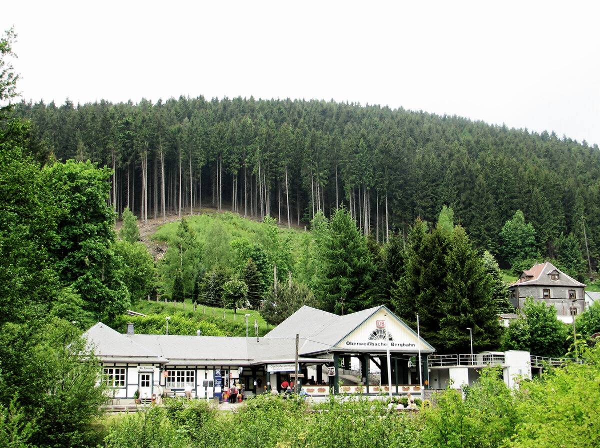 Der Bahnhof Obstfelderschmiede, Talstation der Oberweißbacher Bergbahn, aufgenommen am 24.05.2008.