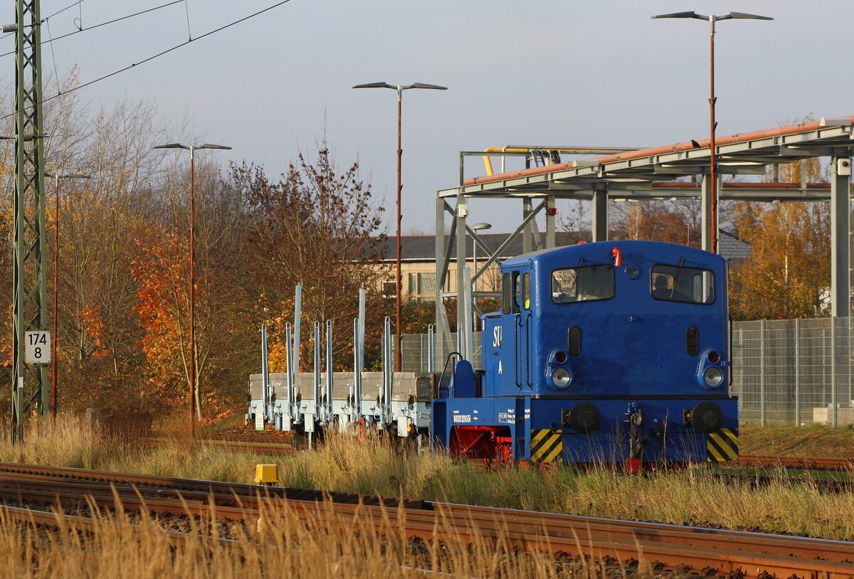In den Reihen abgestellter Maschinen im Bahnhof Klostermansfeld befindet sich auch die ehemalige Lok 13 der Kreisbahn Mansfelder Land. Sie hat noch die NVR-Nummer 98 80 3312 029-2 erhalten, ist aber seit ca. 11 Jahren ohne Fristen. (01.02.2026)