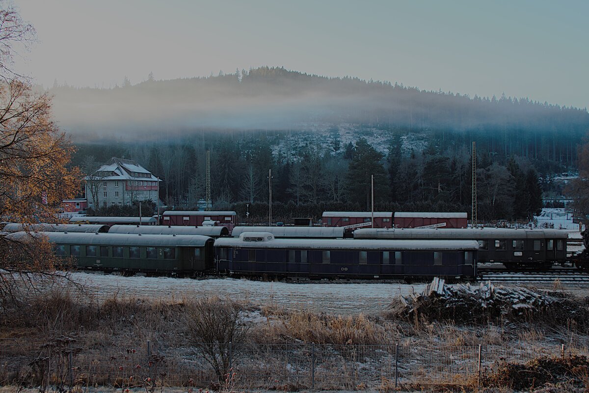Am Abend des 29.04.2018 stand Köf 6586 (ex. 323 878-9) mit dem frisch restaurierten und revidierten Rothaus-Bierwagen (Baujahr 1927), welcher noch nicht ganz fertig mit der Beschriftung war, vor dem IG 3Seenabhn-Pendelzug im Museumsbahnhof von Seebrugg.