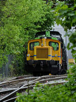 Im Bild eine 1962 bei O&K gebaute Kleindiesellokomotive (DB Köf 11 011, 332 011-6), welche aktuell als WLH 25 unterwegs ist. (Hattingen, Mai 2024)