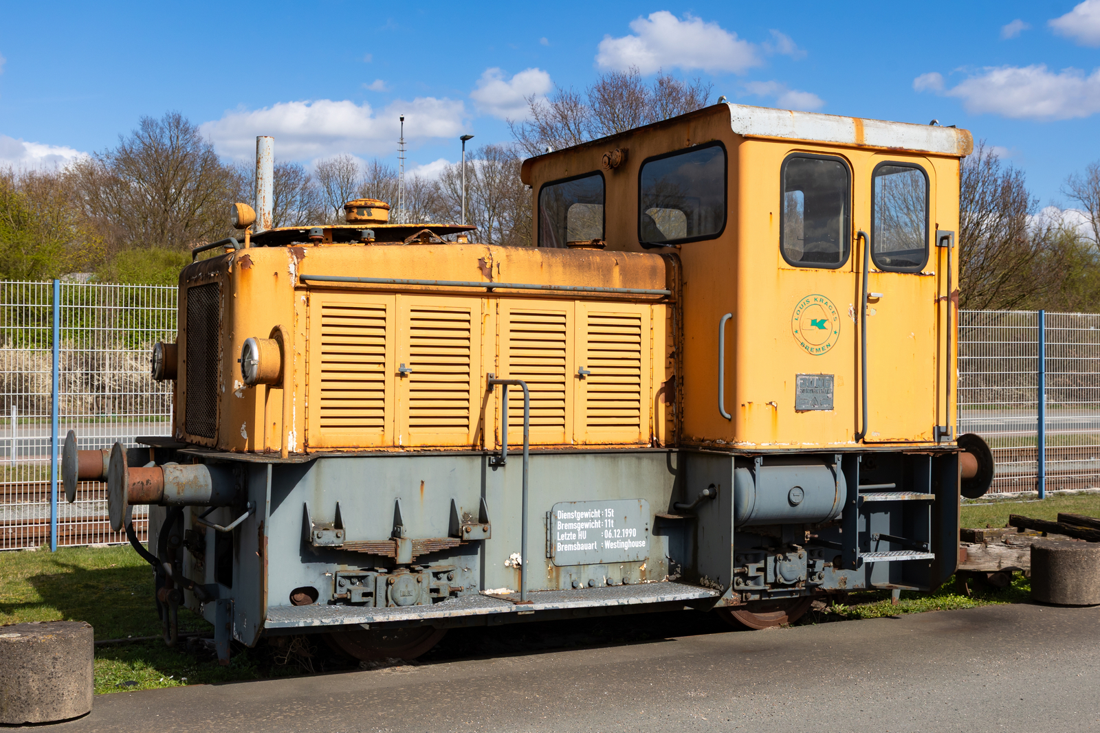 Statisch abgestellt auf einem öffentlich zugänglichen Gelände in Bremen Überseehäfen steht diese Kleinlok. Fabriknummer 3433 mit Baujahr 1962 der Firma JUNG - Jungenthal. 29.3.26 Marvin Schenk