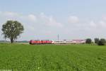 218 486 Abschlepplok der Stuttgrater S-Bahn mit einem D-Lr....