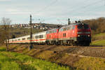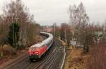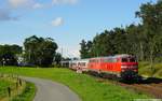 Ein IC aus Westerland kommt hier ein Stück südlich von Lunden des Weges. Zugloks sind 218322 und eine weitere 218. Foto vom 03.09.2017. Bilderdiebstahl wird verfolgt - man kann fragen...