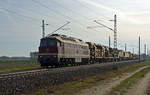 232 079 mit einem Militärzug, aus Torgelow Drögeheide, beladen mit Dingos. Der Zug fuhr über Stralsund nach Rostock Seehafen.  Ferdinandshof 03.07.2019