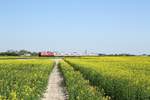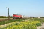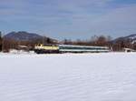 218 452 mit einer RB bei Markt Schwaben in Richtung München Ost am 10.3.2026. Dieser Zug pendelte diesen ganzen Tag wieder zwischen München Ost und Mühldorf. Ganz hübsch da oben auf dem Damm. Die Strecke soll mal 2 Gleisig werden, da muss dann sicherlich viel Material angekarrt werden um das Volumen aufzufüllen.