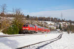 Der BTE-Autoreisezug nach Lörrach musste baustellenbedingt über Singen geführt werden. Selbst während der Rastätter Havarie kam das nur einmal vor. Beim Schloss Beuggen, Rheinfelden fährt freundlicherweise die ozeanblau-beige 218 460-4 "Conny" mit dem Zug vorüber. April 2019.