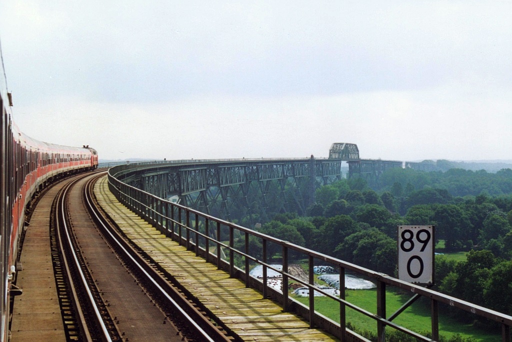 Der Klassiker an den Marschbahn ICs ist eine Doppeltraktion der Baureihe 218! Hier fährt ein solches Gespann, angeführt von 218 397-8, am 02.06.2022 über die Hochbrücke Hochdonn zur Fahrt nach Westerland auf der Insel Sylt. OMSIJakob LP