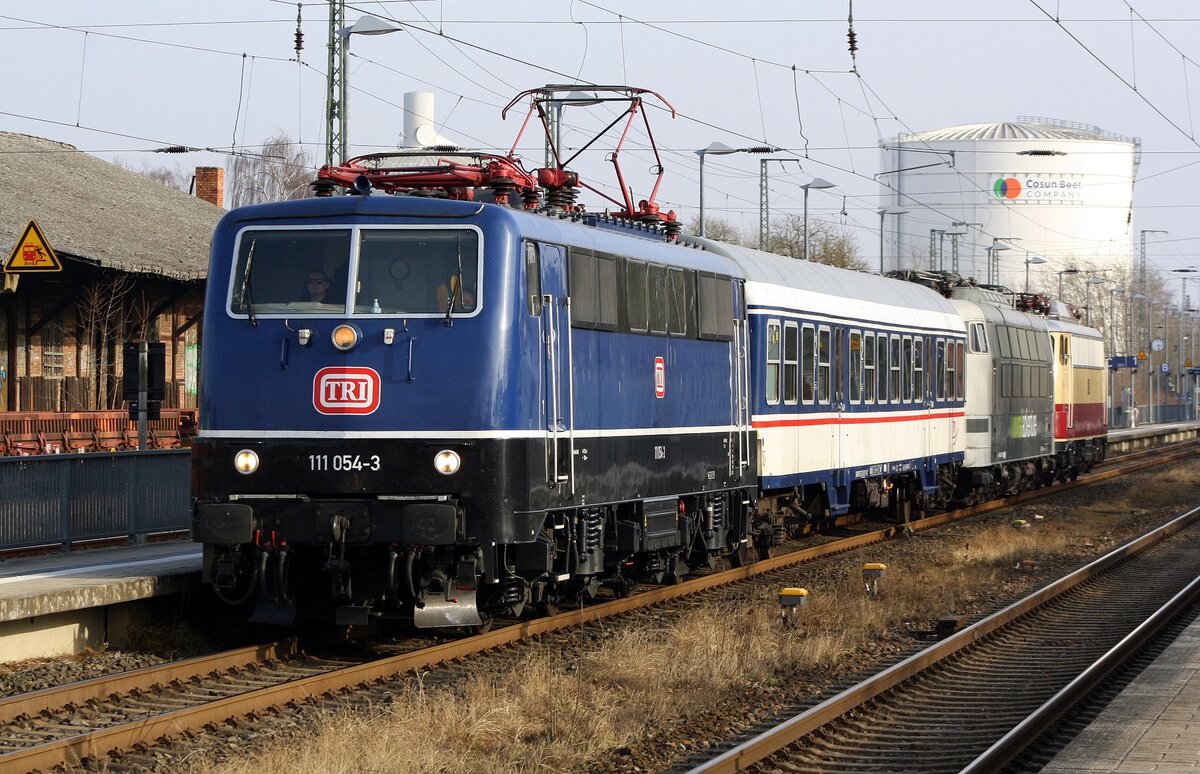 218 414 + 111 107 + 111 044 + 111 226 + 445 102 als Lr-D 70708 in Drochaus. Hier hatte der Nichtwinter doch am 19.01.2020 mal etwas Schnee gebracht.
