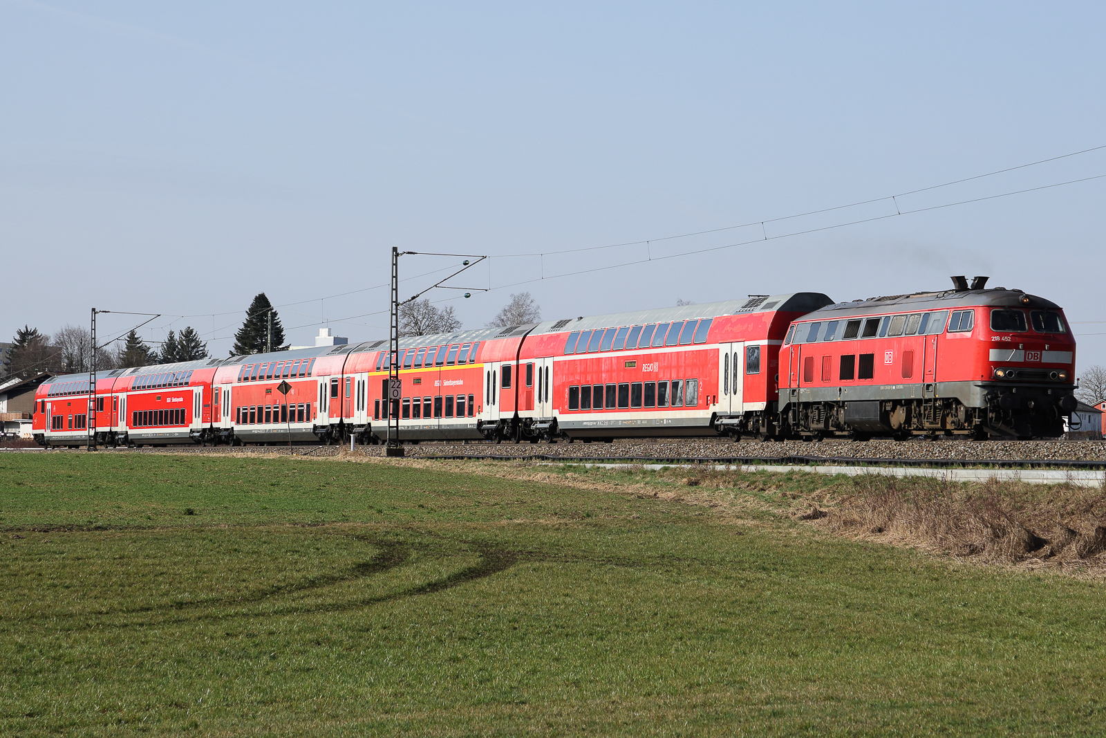 218 401 und 422 ziehen den EuroCity EC 196 an Mellatz vorbei nach Lindau. 14.11.20