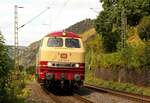 Doch jenäher das Geräusch kam, kristallisierte sich ein Dieselgeräusch heraus, das sich dann als DB 218 208-7 zeigte mit einigen Wechselcontainerwagen. Der Zug fuhr in Richtung Binauer Tunnel durch. 13.10.2021