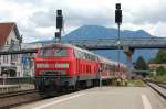 218 342-4 verlässt am 31.07.07 mit einem RegionalExpress nach Ulm HBF den Bahnhof Immenstadt.