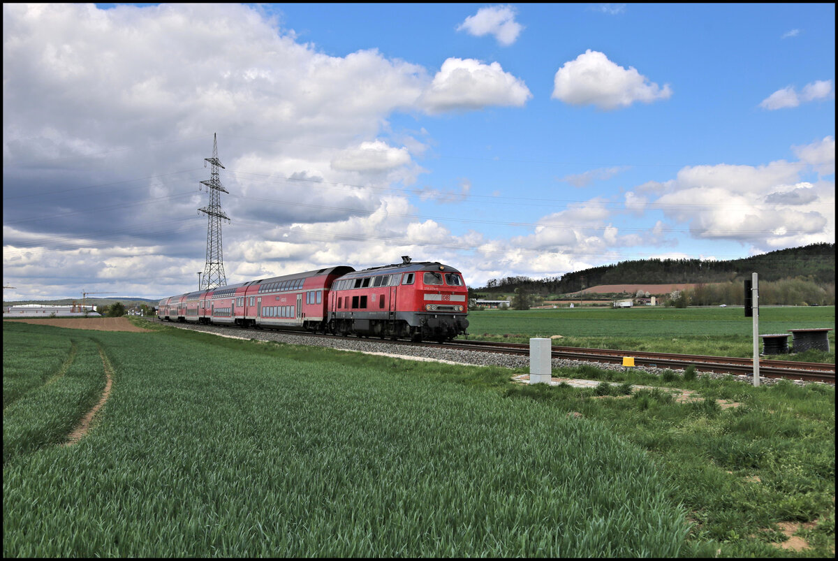 Die Diesellok 218 429 (DB) war am 24.02.2024 auf dem Heimweg von Niebüll nach Kempten, als sie in Würzburg die Grombühler Brücke passierte. Die Maschine hatte einige Wochen im "echten Norden" auf der Marschbahn ausgeholfen.
