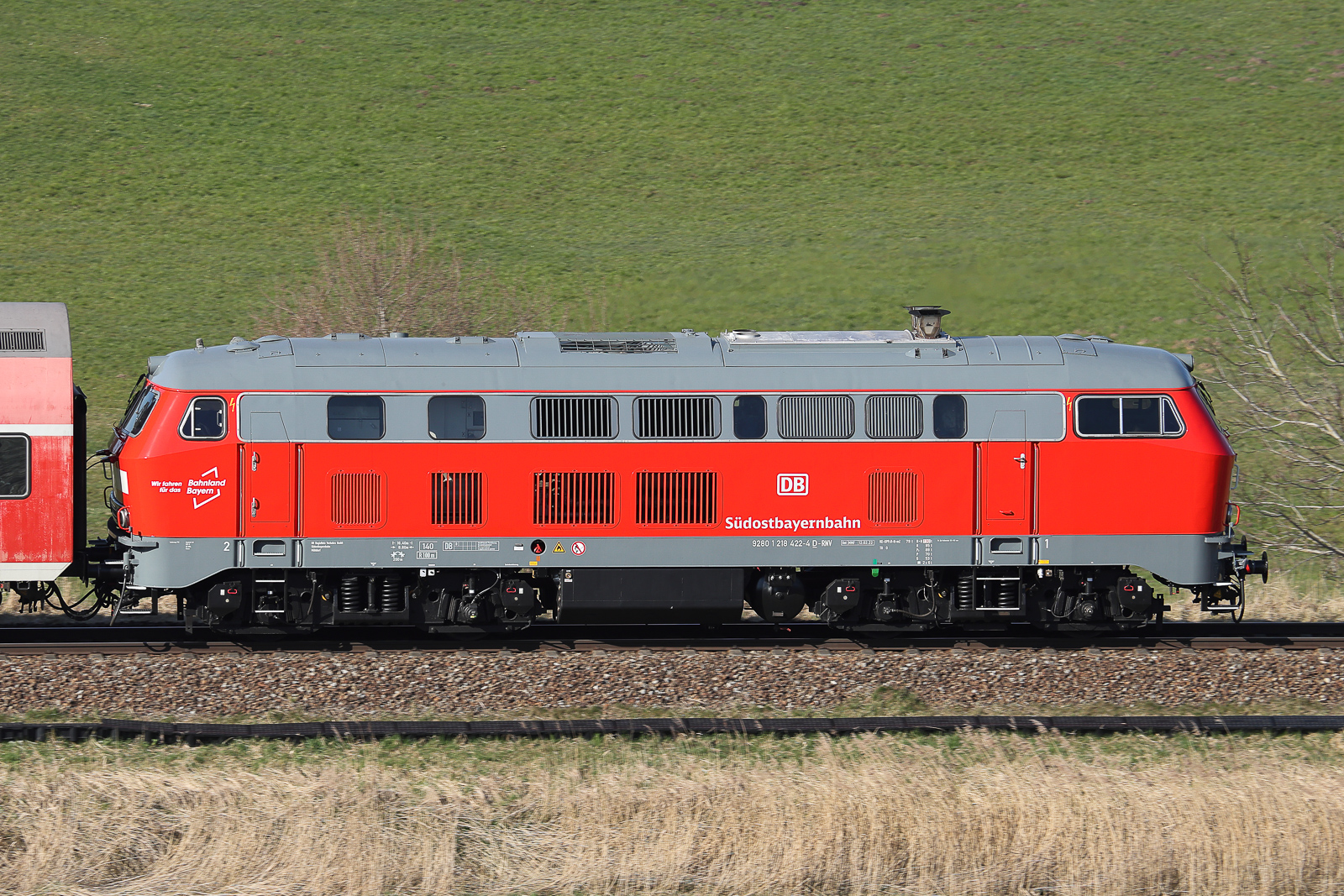 218 452 fotografiert östlich Schwindegg Richtung Weidach. Schon wieder zwischen München Ost und Mühldorf den ganzen Tag lang unterwegs. 19.03.2026. Flo Weiss