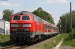 218 360-6 mit IRE 4210 nach Ulm vor der Abfahrt in Lindau. Der Lokführer scheint auch die drückende Hitze zu spüren. (26.05.2008)