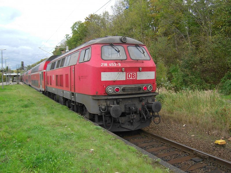 218 453-9 steht mit RE 21424 von Hamburg Hbf nach Lübeck Hbf.