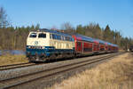 Eine unbekannte 218 mit dem IC 2012 kurz nach Illertissen am 20.12.09