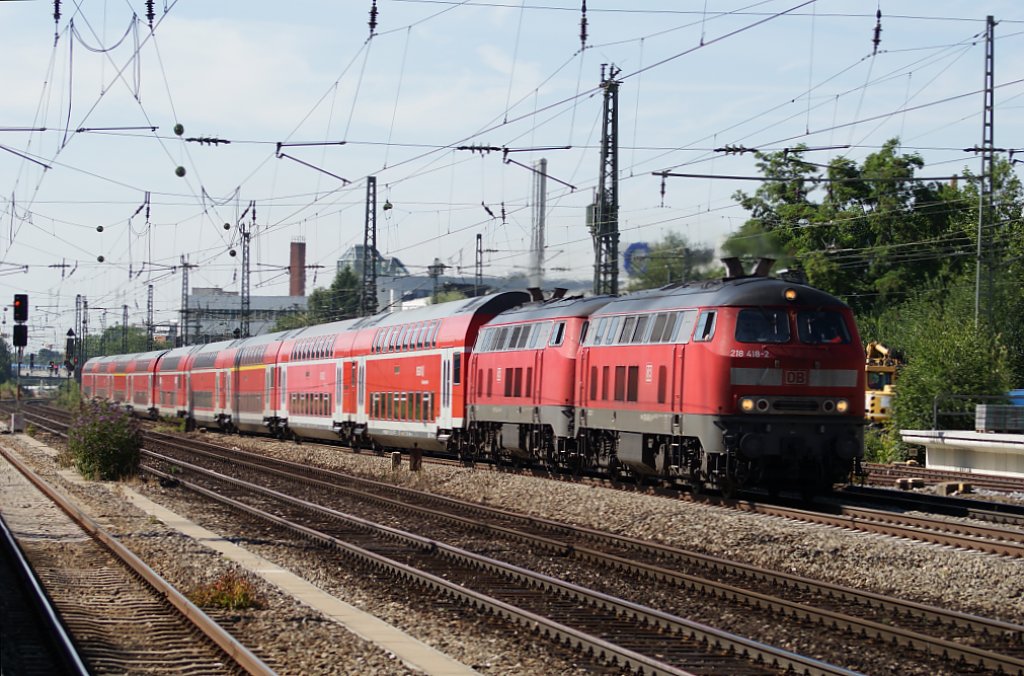 218 418-2 + 218 445-5 mit einem RE in München Heimeranplatz am 29.