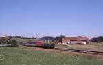 218-130 schleppt am 22.7.2005 einen 628er durch Ludwigshafen Mitte.