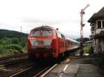 218 362-2 mit RE 12088 (RE 12 Der Eifel-Mosel-Express) Köln Deutz-Trier Hbf auf Bahnhof Jünkerath am 23-7-2004.